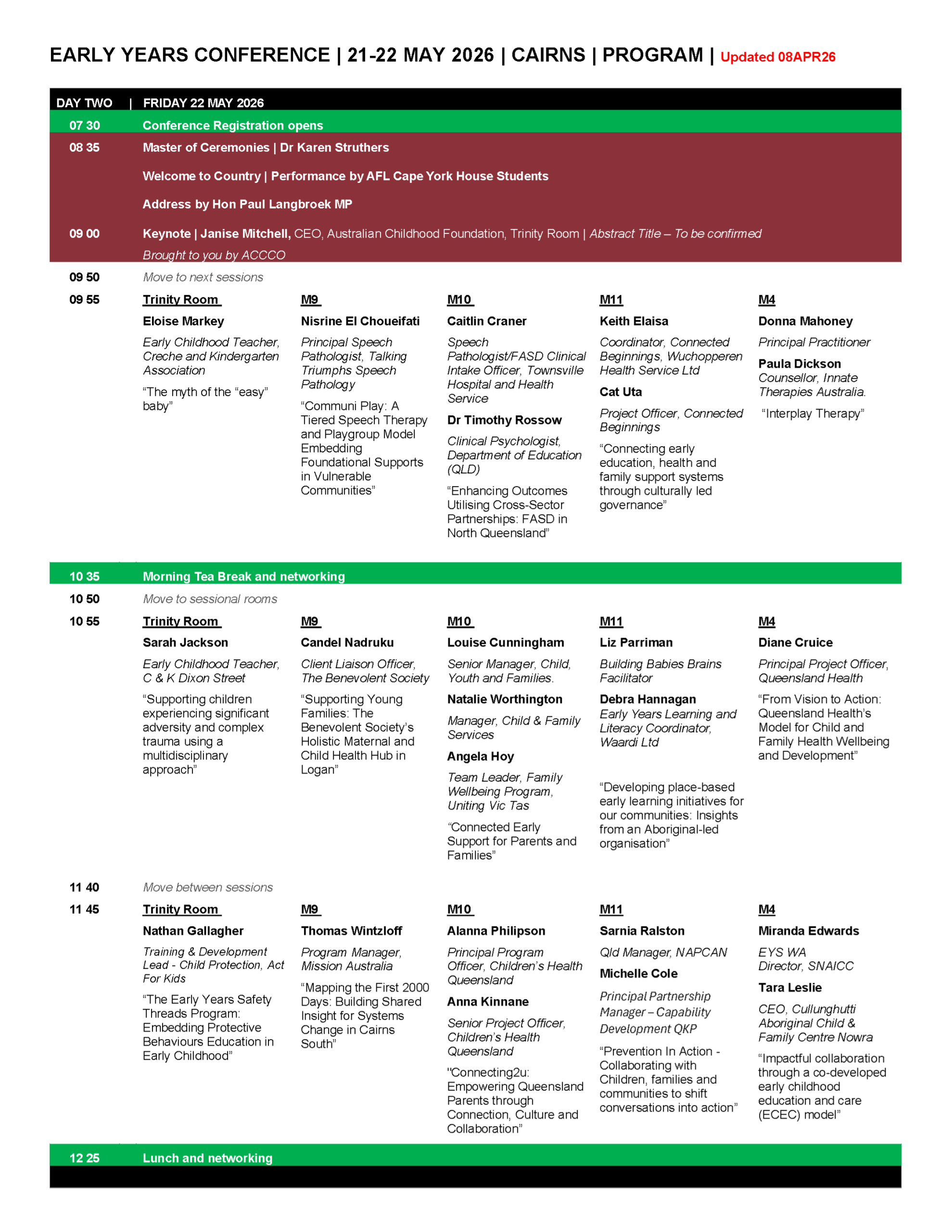 DAY TWO - FRIDAY 22 MAY 2026